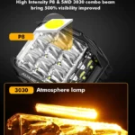 Three Lighting Modes: Combines main spot beam + side shooter + amber DRL for all-day operation — visibility for night driving and attention during the day.