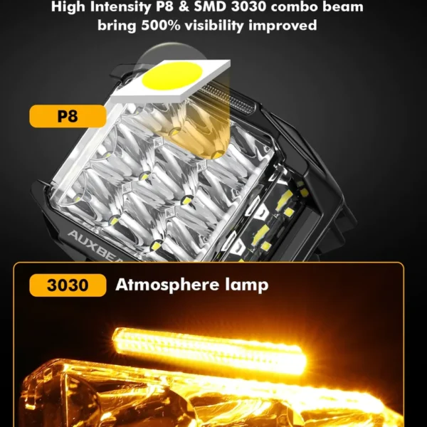 Powerful Light Output: Each light delivers 8220LM with high-intensity P8 LED chips for unmatched clarity and distance performance.
