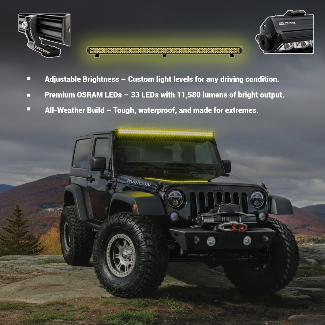 The Night Hawk 43.5″ VLI Series LED Light Bar is built for off-roaders who demand precision lighting, durability, and versatility. Designed by Bushranger engineers, this premium light bar delivers 11,580 effective lumens through 33 OSRAM LEDs, paired with adjustable brightness control and multiple beam covers for unmatched performance in any driving condition.