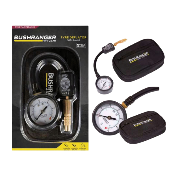 The bushranger tyre deflator with gauge is your reliable off-road companion for precise tyre pressure measurement and controlled deflation. It offers both continuous and intermittent deflation options via a simple toggle, combined with a clearly readable dial and convenient carry pouch for easy portability.