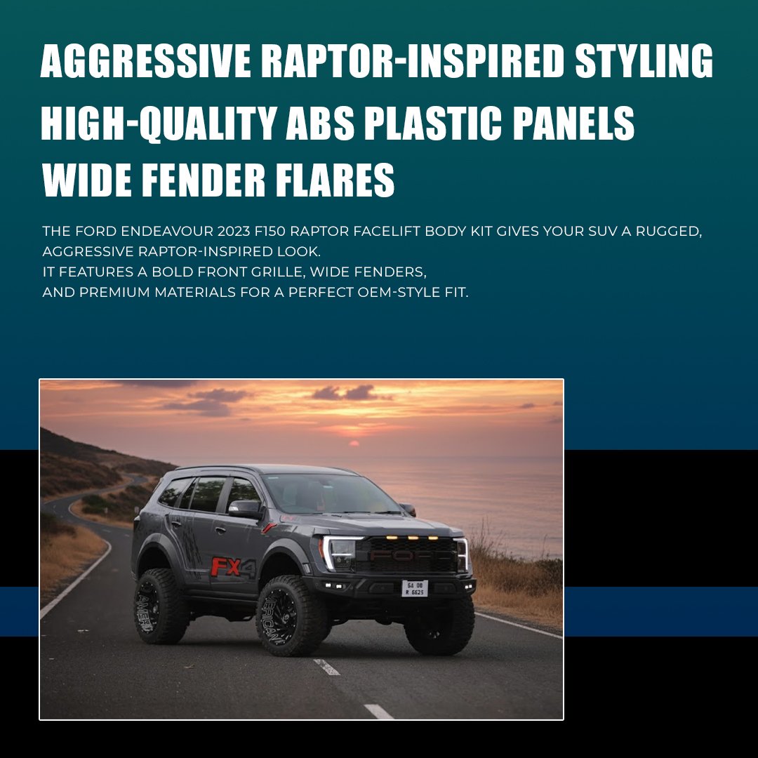 Upgrade your SUV with the Ford Endeavour 2023 F150 Raptor Facelift Body Kit for aggressive looks, improved durability, enhanced off-road performance.