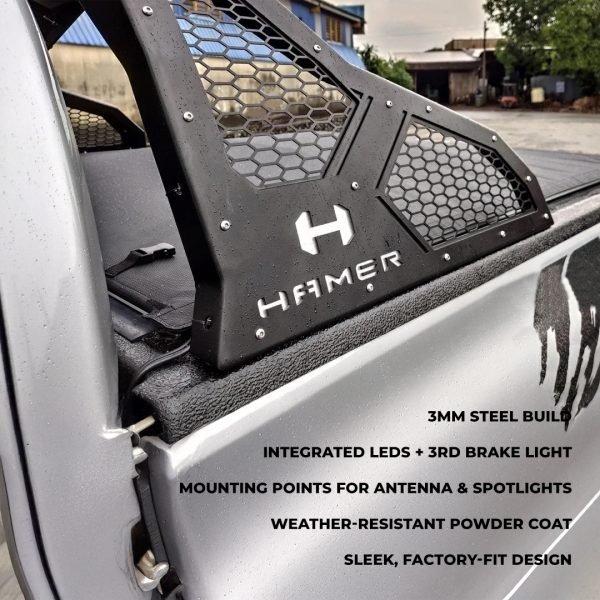 Upgrade your Hilux with the Hamer Warrior Roll Bar for Toyota Hilux โa premium accessory that combines rugged construction, off-road functionality, and stylish design. Built with heavy-duty steel and equipped with LED lighting and mounting options, this roll bar enhances both protection and appearance, making your Toyota Hilux more capable and commanding.