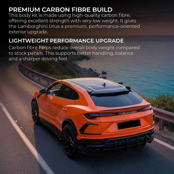 Upgrade your luxury SUV with the Lamborghini Urus Carbon Fibre Body Kit, designed to enhance both visual impact and aerodynamic performance. Crafted from premium-grade carbon fibre, this styling package transforms the Urus into a sharper, more aggressive road presence while maintaining the refined character of the vehicle.