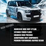 Aggressive Aerodynamic Design – Enhances the Defender’s stance with extended fenders, wider arches, and a bold front fascia for superior on-road presence.