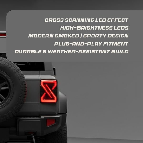 Upgrade your Mahindra Thar 2020+ with Cross Scanning Function Tail Lamps, designed for enhanced style and safety. These advanced LED tail lamps offer superior visibility and durability, making them a must-have upgrade for your vehicle.