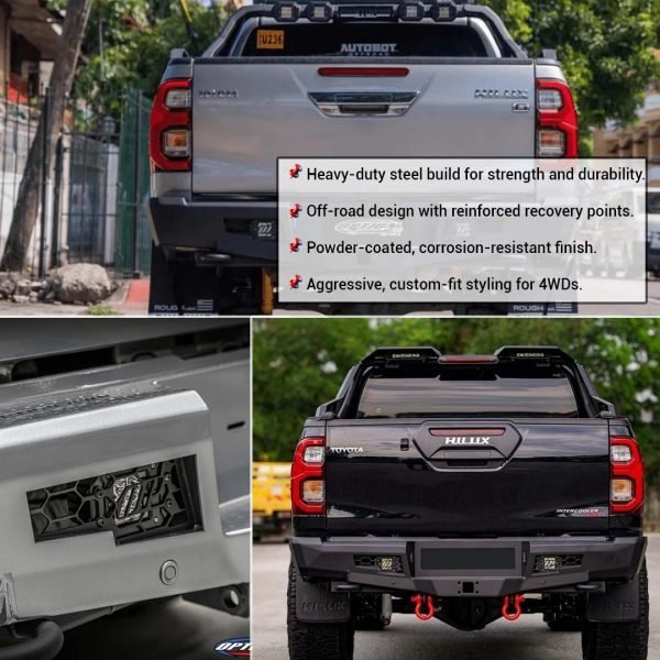 - Off-Road Ready Design – Optimized departure angle and reinforced mounting points for maximum trail clearance and recovery capability.