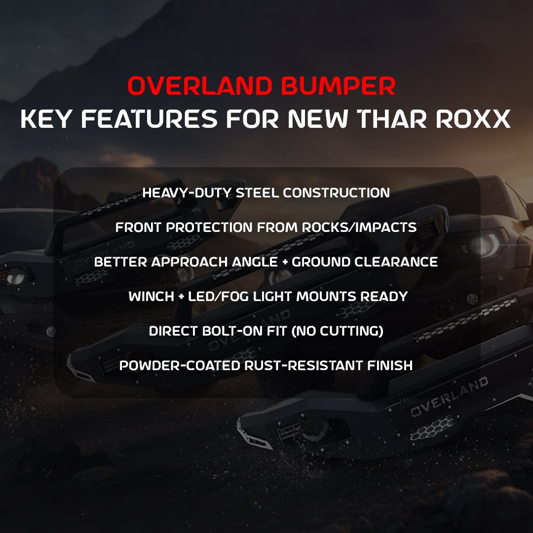 Transform your Mahindra Thar into a true off-road beast with the ROXX Overland Front Bumper. Engineered for durability, aggressive styling, and high performance, this bumper is the ultimate upgrade for adventure lovers and off-road enthusiasts.