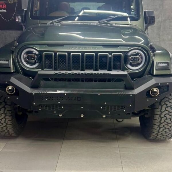 Enhance your New Mahindra Thar’s rugged look and off-road performance with the Overland Bumper, designed for ultimate style and durability.