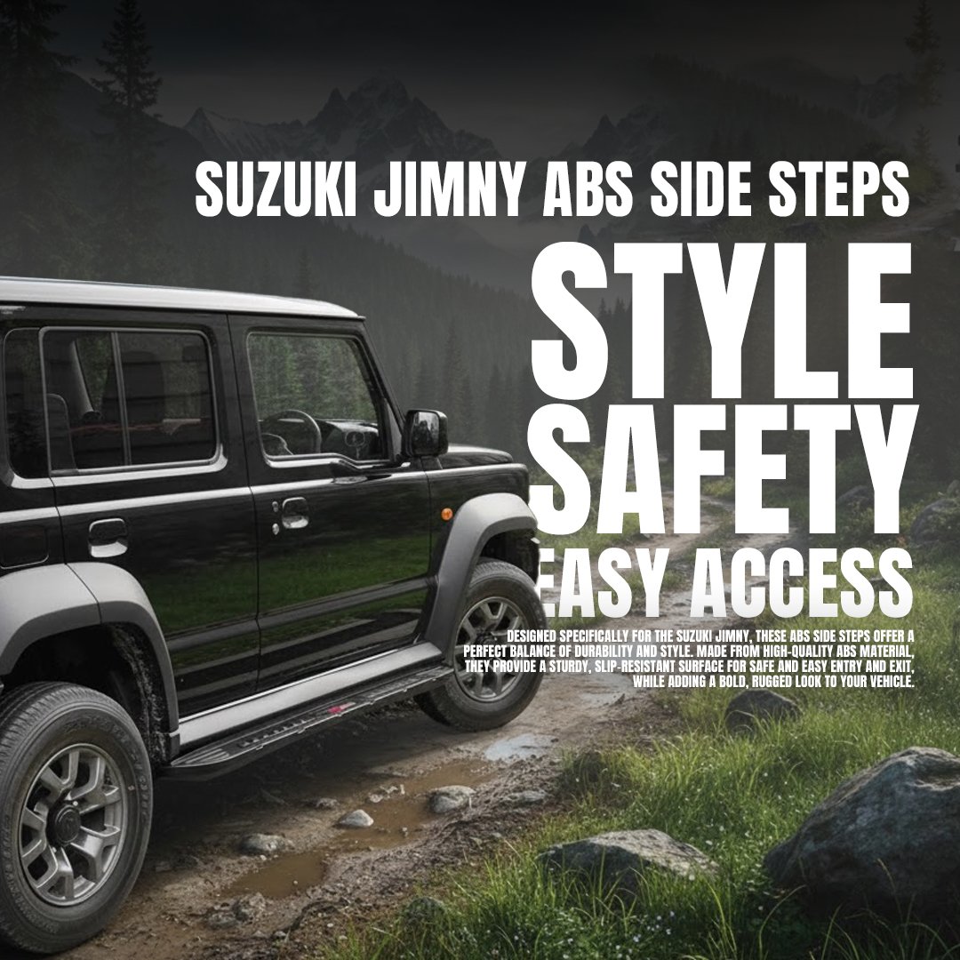 Elevate your Suzuki Jimny with durable and stylish Suzuki Jimny ABS side steps, built for both everyday convenience and off-road resilience. Crafted from strong ABS material, these side steps offer a sleek upgrade to your Jimny’s functionality and appearance.