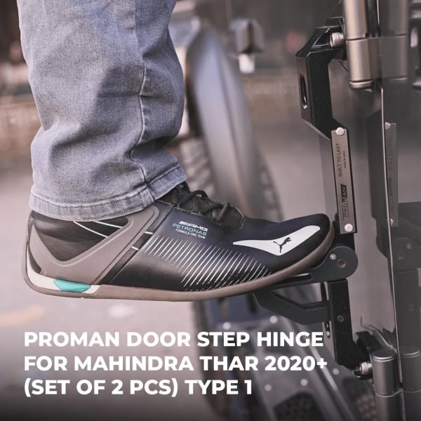 Upgrade the convenience and functionality of your Mahindra Thar 2020+ with the Proman Door Step Hinge Set, specifically designed to provide easy access to your vehicle.
