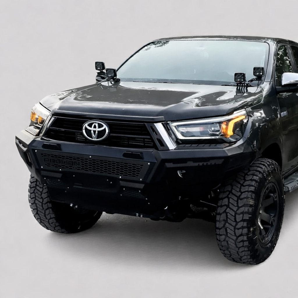 Give your Toyota Hilux a commanding road presence with this tough, off-road-ready bumper that combines both form and function for a dominant, rugged look.