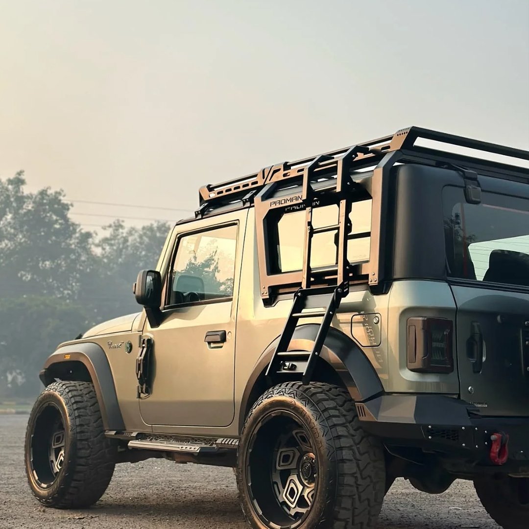 The Proman Mahindra Thar 2020 Front Roof Carrier, Rear Roof Carrier and Ladder is the ultimate rooftop storage and access upgrade for your Mahindra Thar. Built for off-road durability and high utility, this complete system includes a heavy-duty front roof carrier, a spacious rear roof carrier, and a robust ladder for easy rooftop access. Whether youโre packing camping gear, overlanding equipment, or work tools, this setup ensures you can carry more while keeping your Thar adventure-ready.