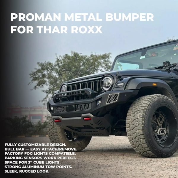 This heavy-duty, performance-driven bumper is engineered to handle off-road challenges while maintaining a premium, aggressive look. Whether conquering rocky trails or navigating urban roads, the ProMan Metal Bumper ensures your THAR ROXX stands out with confidence.
