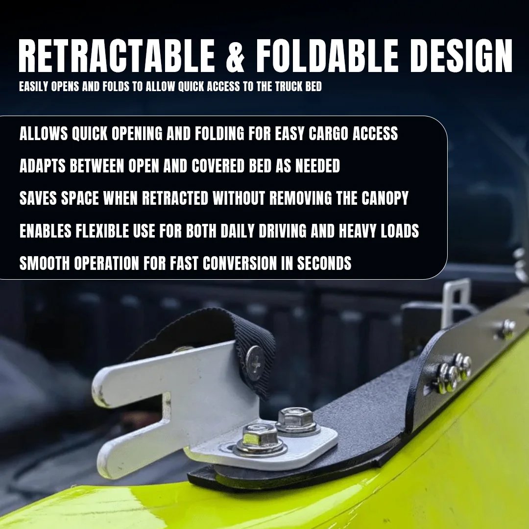 Quick Retractable Folding Design: Easily fold or collapse forward to open the truck bed in seconds