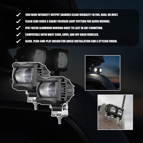 Improve your vehicle’s safety and visibility in low-light conditions with this high-performance 10W × 2 fog light pair featuring a clear lens design. Ideal for off-road and daily driving, these fog lights deliver focused illumination to cut through fog, rain, and dust.