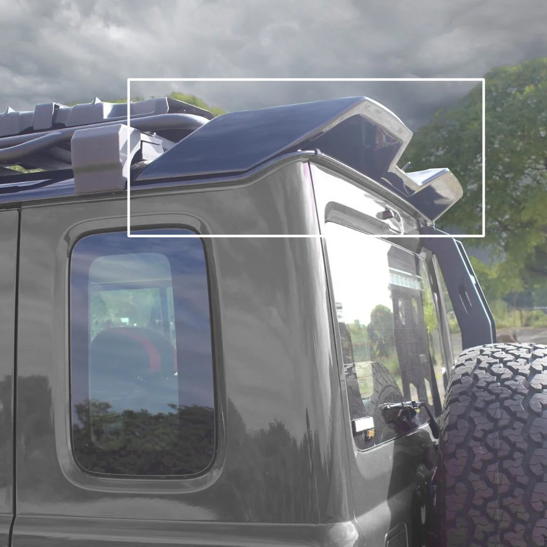 Upgrade your Suzuki Jimny  with this aggressive and stylish rear roof spoiler, designed to enhance both form and function. Crafted to complement the rugged silhouette of your Jimny, this spoiler boosts aerodynamic efficiency while giving your SUV a sporty, standout look.