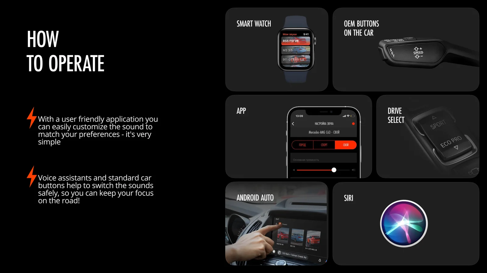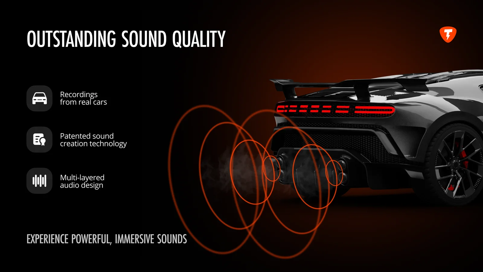 - Authentic Sports Car Sound – Simulates the deep, aggressive exhaust tones of high-performance vehicles.