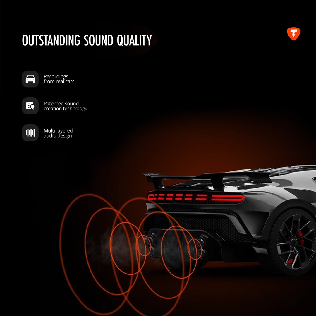 - Versatile Sound Library: Choose from over 25 legendary sports car sounds (e.g., Porsche 911 Turbo S, BMW M3, Lamborghini Aventador SV) or futuristic tones like โUFOโ and โTransformer.โ