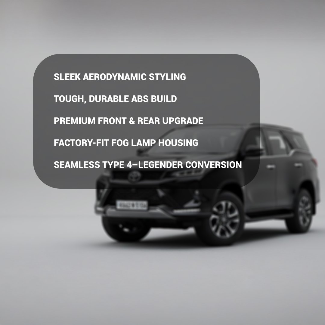 Seamless Type 4 to Legender Transformation – Designed to perfectly match Toyota Fortuner’s factory lines.