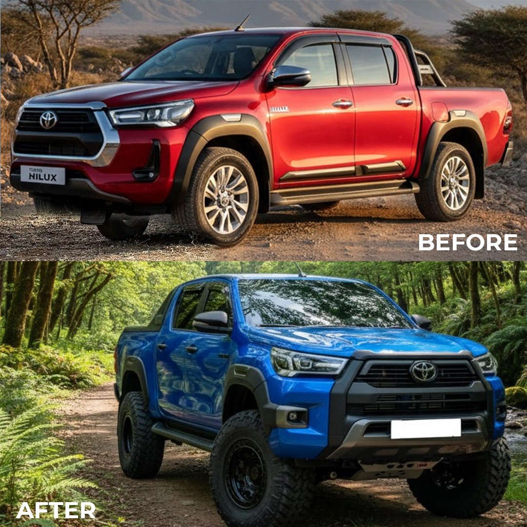 Transform your Toyota Hilux Revo (2016–2020) into the sleek and bold Rocco 2021+ style with ease. This body kit offers: