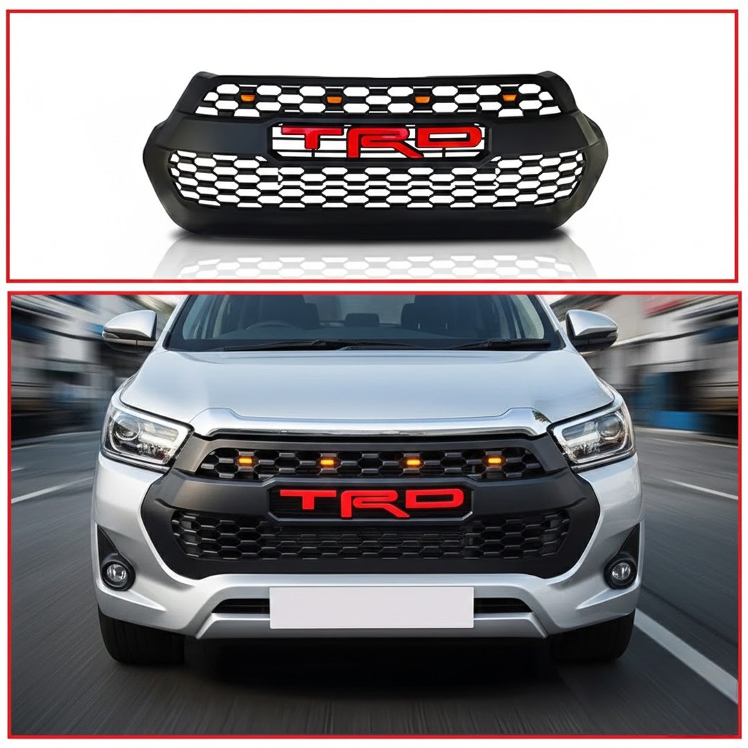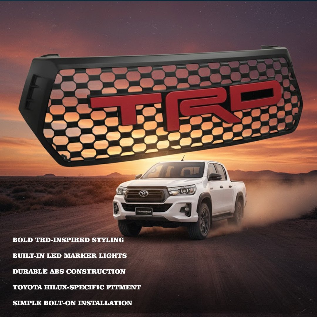 Upgrade your Toyota Hilux with the TRD Grill featuring integrated Marker LEDs, designed to enhance visibility, style, and off-road presence. This custom-fit grille gives your Hilux a rugged and aggressive look, while the built-in LED markers add an extra layer of visibility in low-light conditions. Whether you’re hitting the trails or cruising the city streets, this TRD-inspired grille is the perfect blend of form and function.