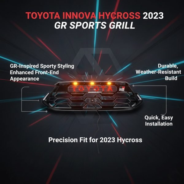 Give your Toyota Innova Hycross 2023 the GR-inspired edge it deserves with the GR Sports Grill. Designed for enthusiasts who demand style, quality, and performance, this grille is the perfect upgrade to make your vehicle stand out effortlessly.