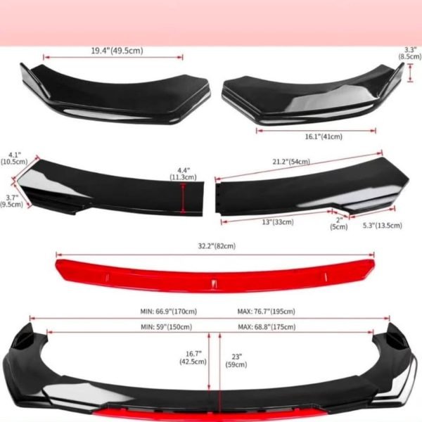 - 4-Piece Set – Includes left and right side lips, center split section, and red accent strip